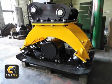 Устанавливается на рабочее оборудование-рукоять экскаватора. Трамбующее усилие 8-10 т. Размер плиты 1350х900 мм